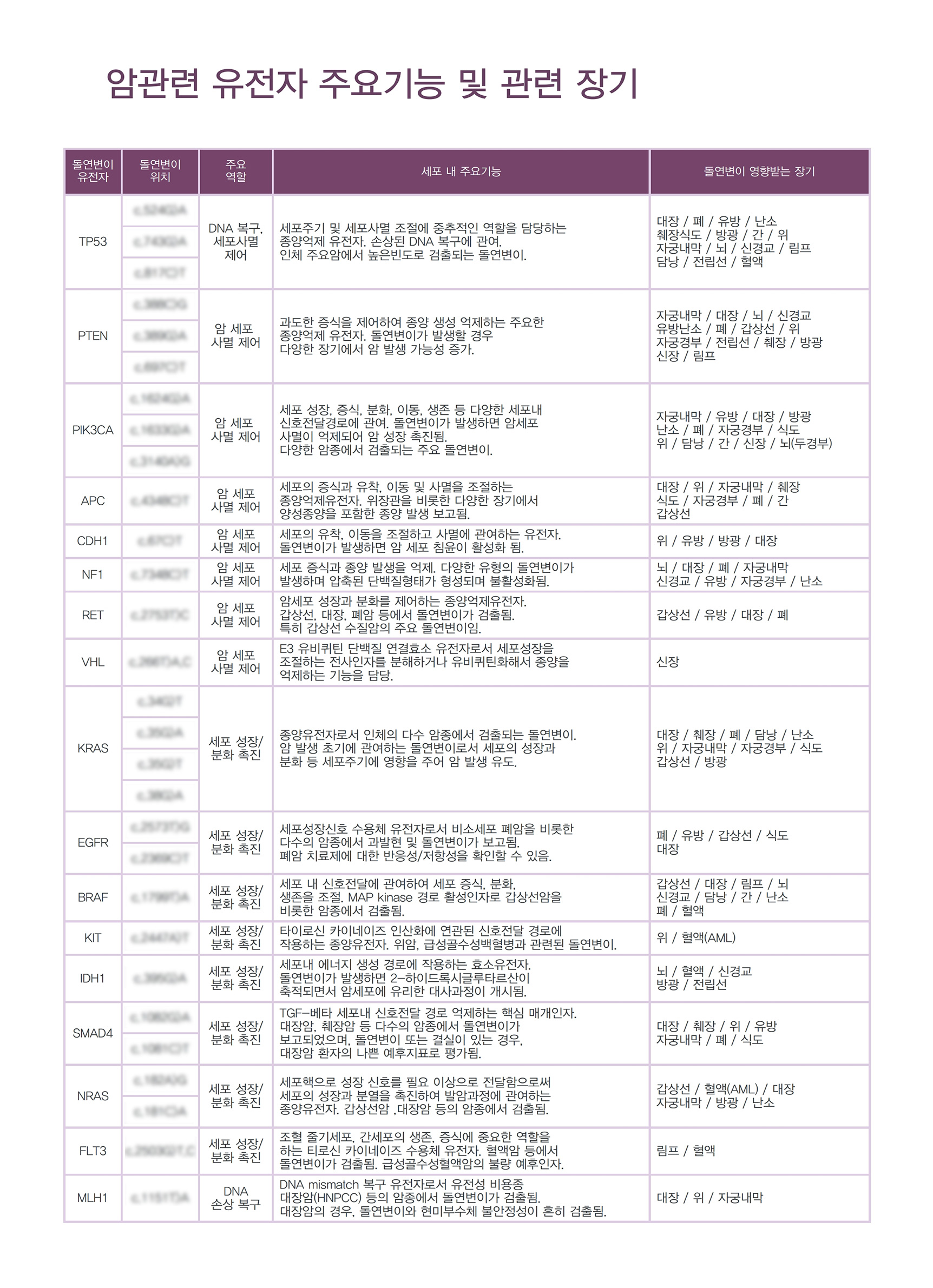 암을 유발하는 주요 유전자의 돌연변이 분석