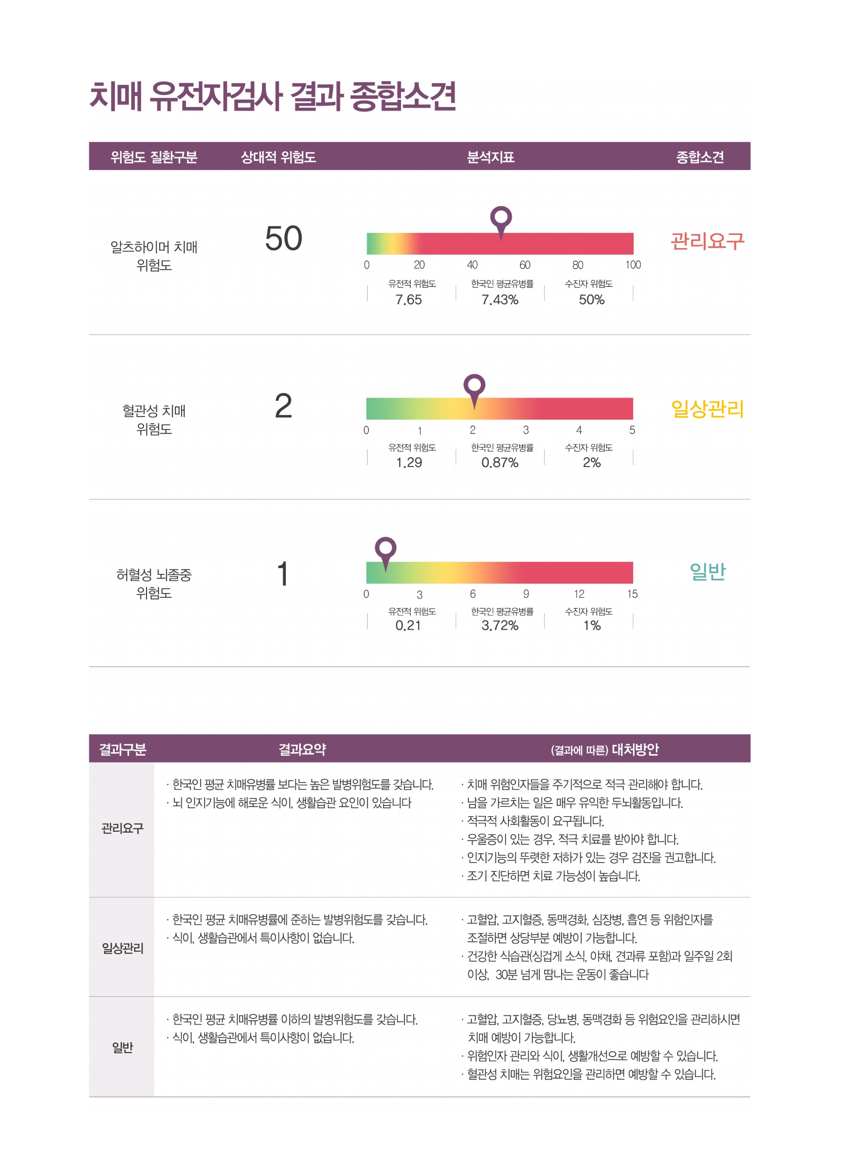 암 보다 더 두려워하는 질환, 치매는 막연한 두려움이 더 큰 문제입니다. 알츠하이머성 치매, 뇌혈관성 치매와 허혈성 뇌졸중의 선천적 위험도를 확인하면 예방치료나 생활개선을 통해 발병을 예방하거나 지연시킬 수 있습니다. (치매 5년 조기진단하면 예상 유병률이 42%까지 감소효과)